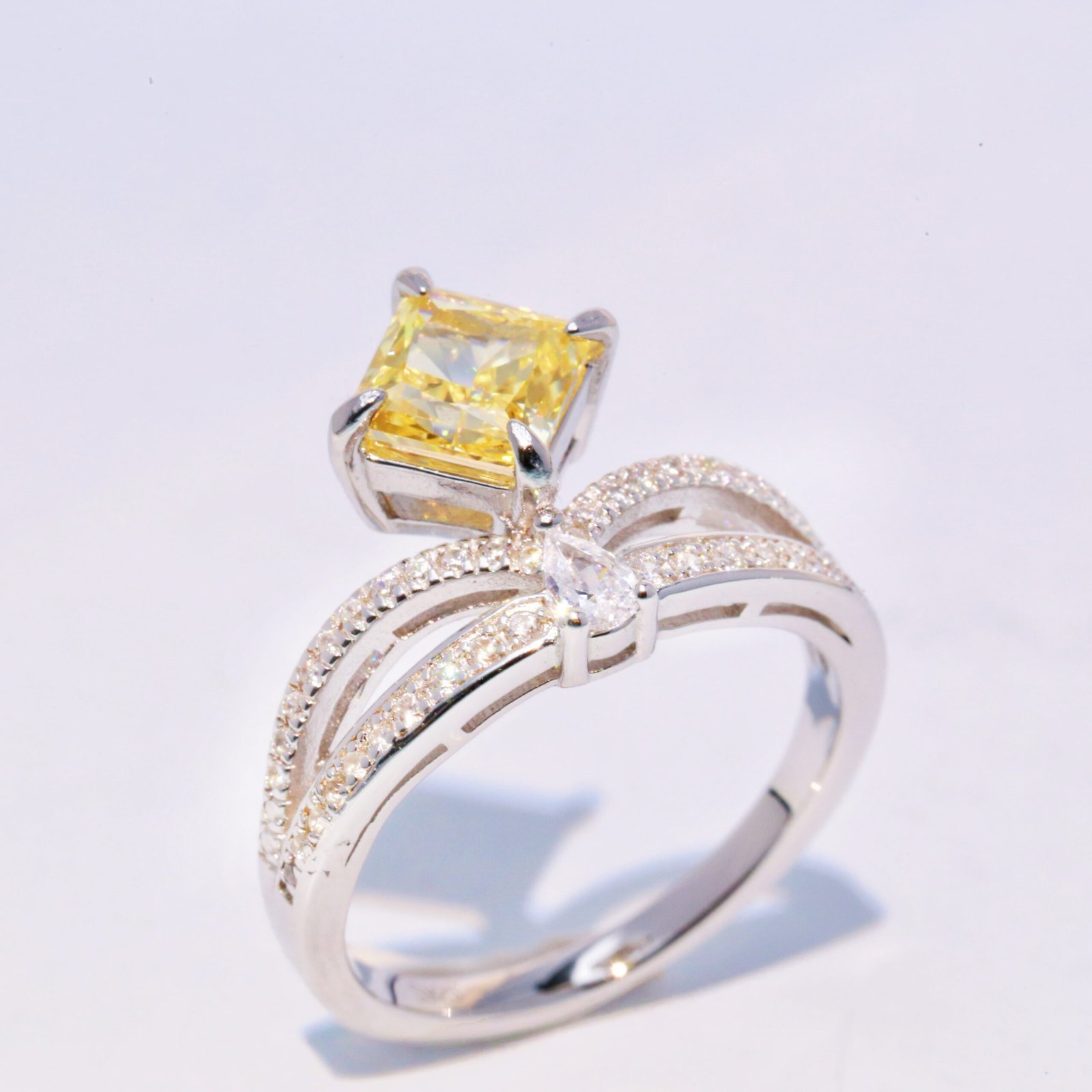Square Yellow Lab-Created imitation Sapphire Double Band Ring